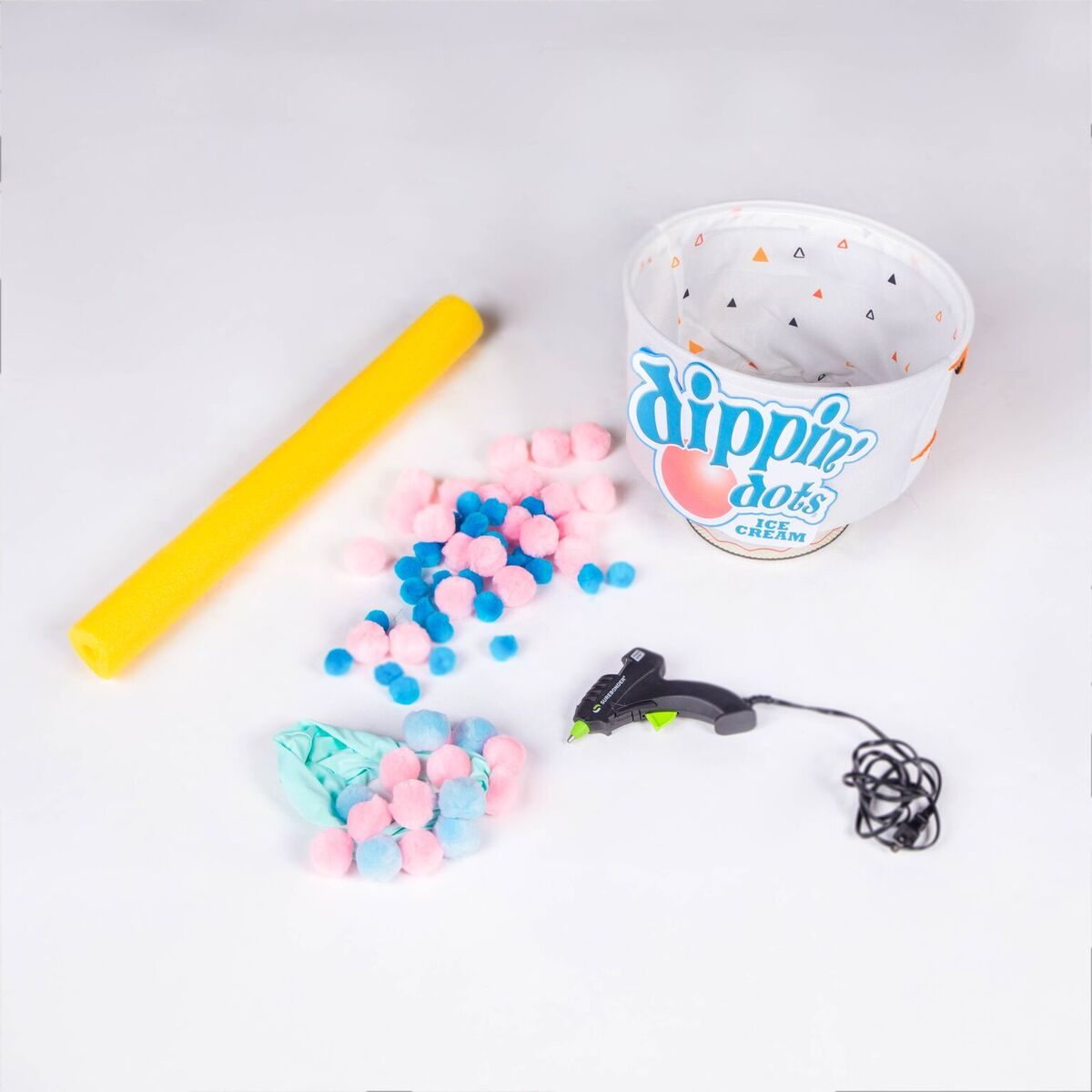 Insert pool noodle onto the bucket, and add a Dippin' Dots logo on the side!