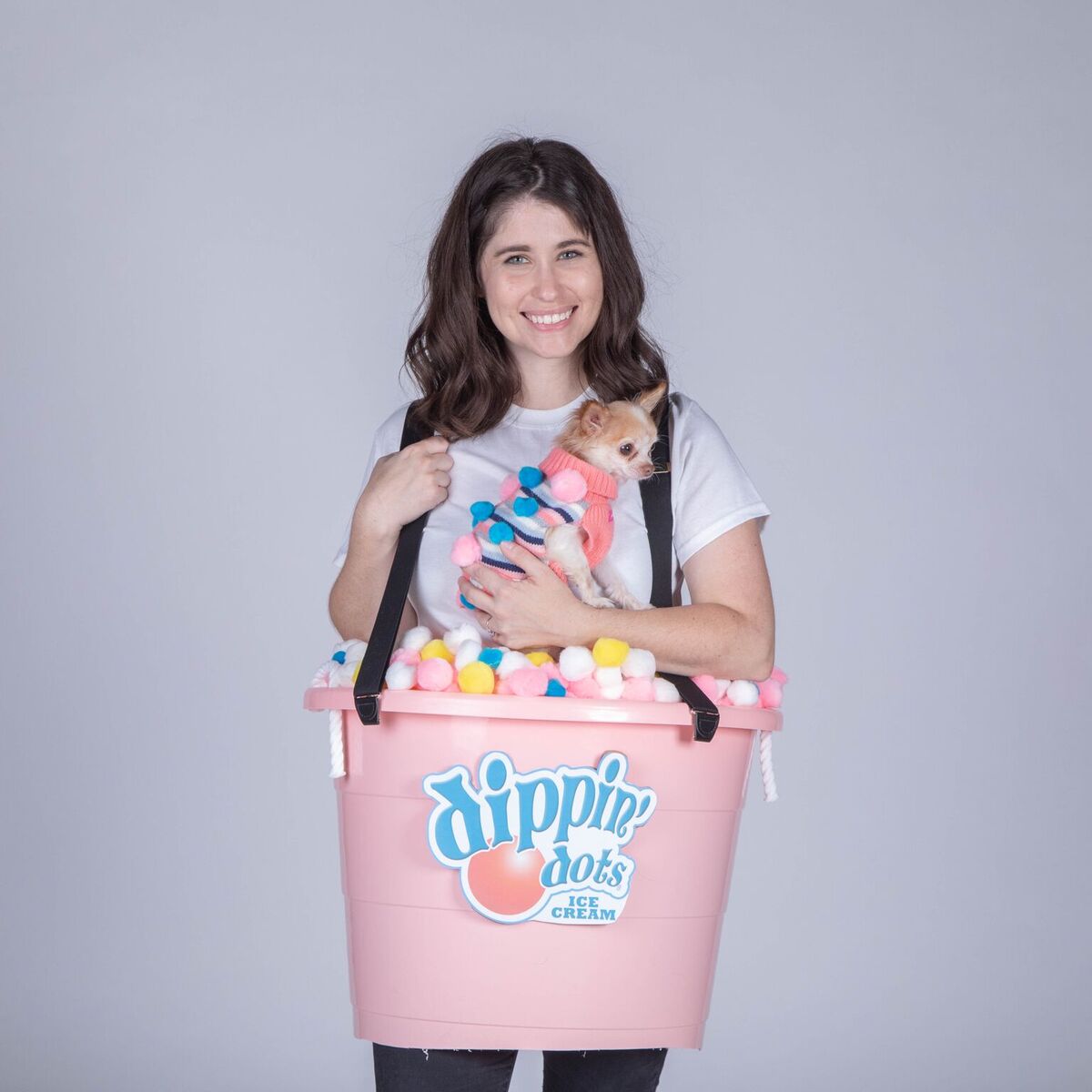 Pair this Dippin' Dots doggie costume with the Cup of Dippin' Dots birthday cake costume for the most adorable duo around!